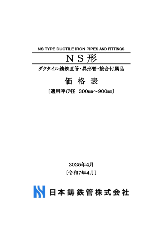 呼び径450までのNS形は、SⅡ形の施工性を向上させた耐震継手です。呼び径500~900のNS形は、S形の施工性向上だけでなく、1種類の接合形式で管路を更新できることから、管路設計及び施工管理を容易にする耐震継手管として開発されました。